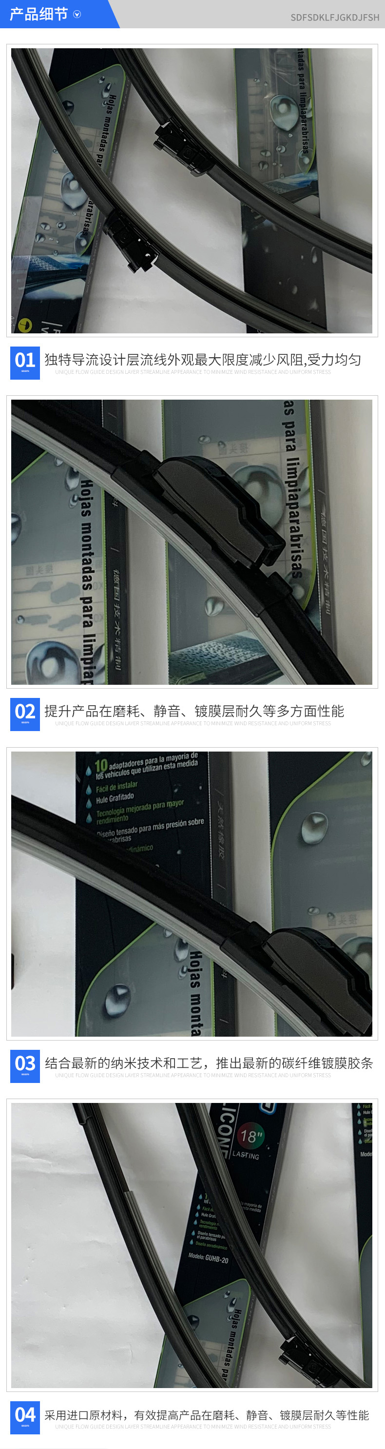 本公司產(chǎn)品涵蓋通用無骨雨刷、多功能一體雨刷、專車專用定制雨刷、雪刷等。我司產(chǎn)品外觀款式設(shè)計別具風(fēng)格,特別在硅膠膠條方面,歷經(jīng)二十多年的研發(fā)改良,有著獨(dú)特的開發(fā)和應(yīng)用經(jīng)驗(yàn),在大中華區(qū)域獨(dú)樹一幟。